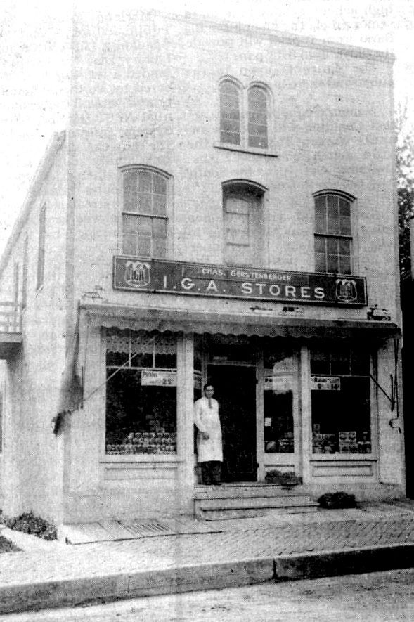 Gerstenberger IGA Grocery. Another grocery of the time was Charles Gerstenberger's IGA Grocery Store, which opened March 27, 1930 and stayed open for 20 more years. The store was designed to be a “help yourself type” and had a meat section. Housed halfway up the block between Seventh Street and Eighth Street on Main Street in a building now demolished, the store offered opening day prizes, including a free console mirror to the family who made the largest purchase. For people who correctly counted beans in a jar, there were the prizes of an eight-pound ham, sack of flour, box of bacon, and candy bars for the women and cigars for the men.