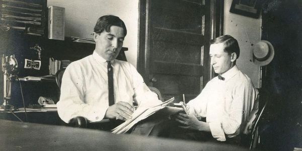 Photograph above, Eudora newspaper office in 1907; to right, Will Stadler, long-time editor
